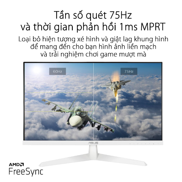 Tốc độ làm mới 75Hz và thời gian phản hồi hình ảnh chuyển động 1ms (MPRT) giúp giảm hiện tượng nhòe và nhòe chuyển động, giúp Màn hình máy tính ASUS VY249HE-W trở nên hoàn hảo cho các trò chơi có nhịp độ nhanh đòi hỏi phản ứng nhanh với những gì đang xảy ra trên màn hình. Ngoài ra, công nghệ AMD FreeSync giúp loại bỏ hiện tượng xé màn hình và tốc độ khung hình bị giật cho trải nghiệm chơi game siêu mượt mà.